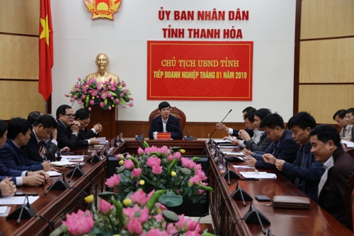 Với mục đích tạo sự gần gũi, thân thiện để doanh nghiệp, nhà đầu tư mạnh dạn, cởi mở, tích cực trao đổi, kiến nghị, hiến kế trên tinh thần xây dựng và sự phát triển chung của tỉnh; đồng thời thể hiện sự quan tâm, khuyến khích và cầu thị của lãnh đạo tỉnh đối với sự phát triển của cộng đồng doanh nghiệp; Chủ tịch UBND tỉnh định kỳ hằng tháng tiếp doanh nghiệp 01 buổi nhằm kịp thời tháo gỡ những khó khăn, vướng mắc trong hoạt động đầu tư, sản xuất kinh doanh trên địa bàn tỉnh. Tại buổi tiếp, đã có những phản ánh khó khăn, vướng mắc của các doanh nghiệp, như: Công ty TNHH Dịch vụ thương mại tổng hợp Minh Long (Thị xã Bỉm Sơn), Công ty TNHH thương mại và dược phẩm Châu Hoàng, Công ty CP Buffalo Thanh Hóa ...