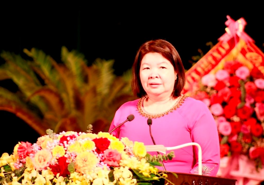 Chủ tịch Liên minh HTX Việt Nam Cao Xuân Thu Vân phát biểu tại buổi lễ. |