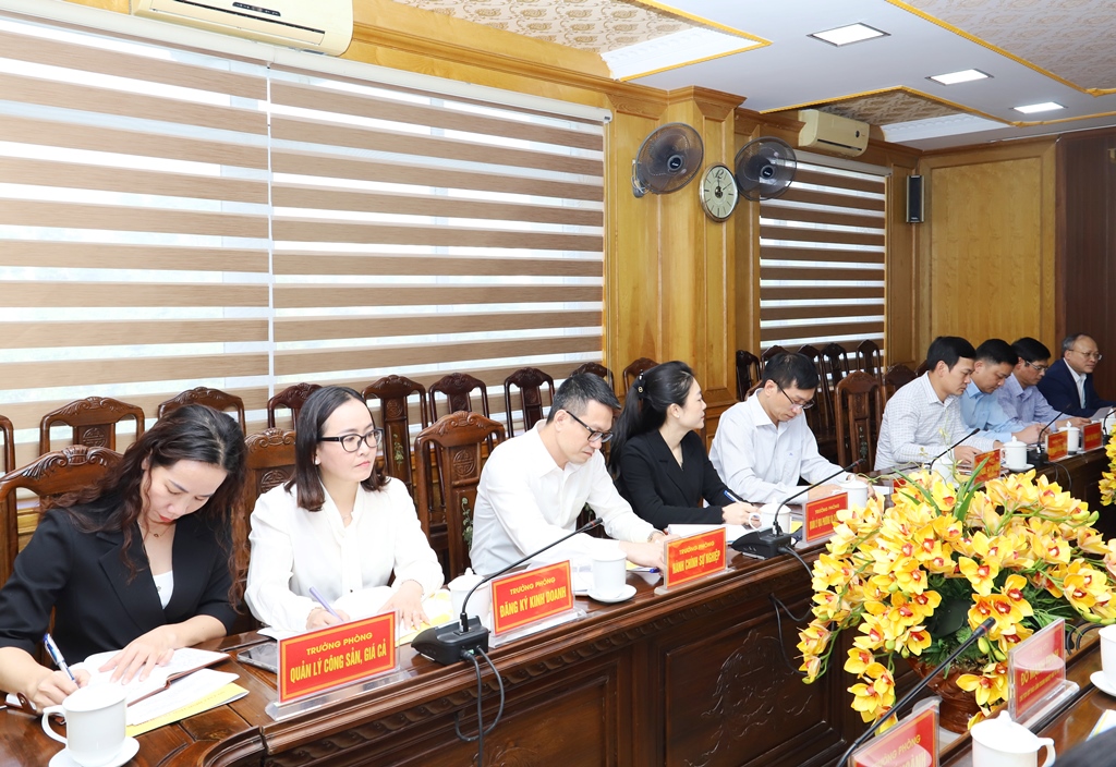 | Giám đốc Sở Tài chính báo cáo tại buổi làm việc. |