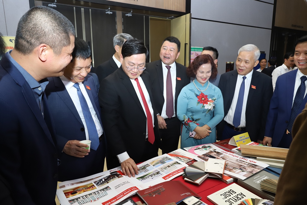 Bên lề hội nghị, hoạt động trưng bày, giới thiệu sản phẩm của các doanh nghiệp, HTX, hộ kinh doanh trên địa bàn tỉnh đã thu hút sự quan tâm của đông đảo đại biểu.