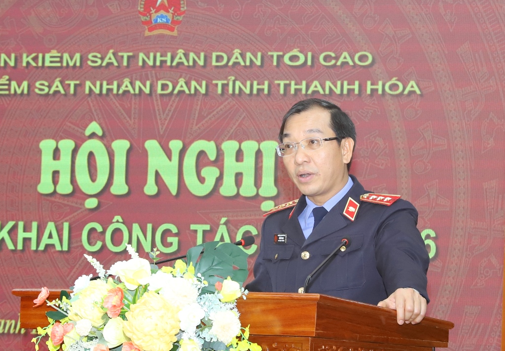 Phát biểu chỉ đạo tại hội nghị, Phó Viện trưởng VKSND tối cao Hồ Đức Anh ghi nhận, đánh giá cao những kết quả ngành kiểm sát tỉnh Thanh Hóa đã đạt được trong năm 2025.