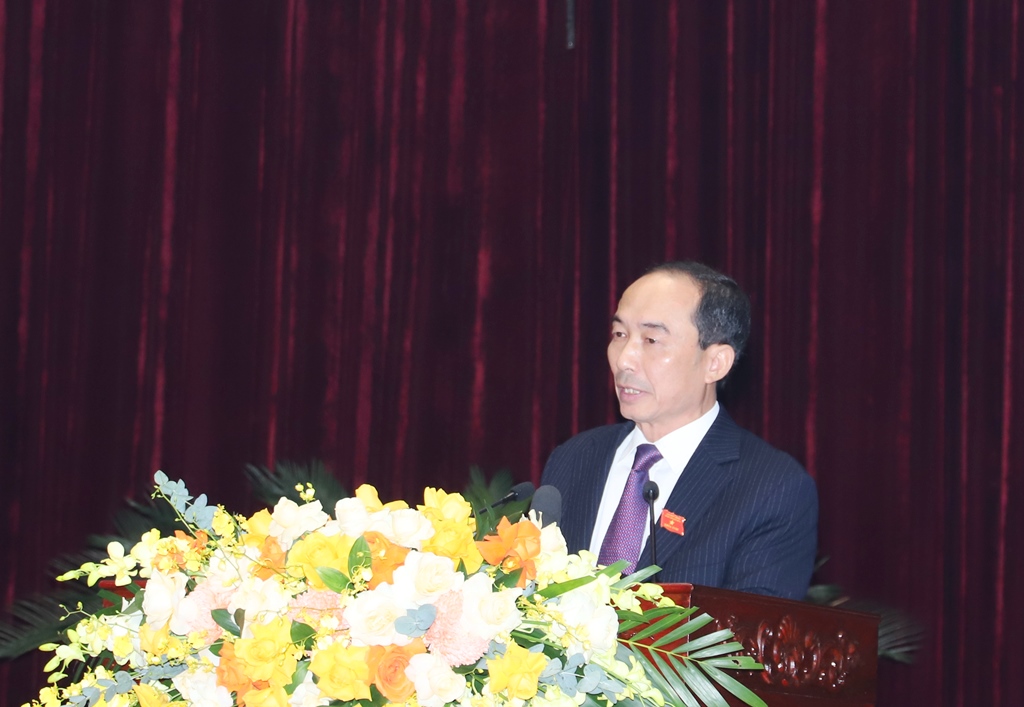 Chủ tịch UBND tỉnh Nguyễn Hoài Anh phát biểu ý kiến tiếp thu và giải trình tại kỳ họp.