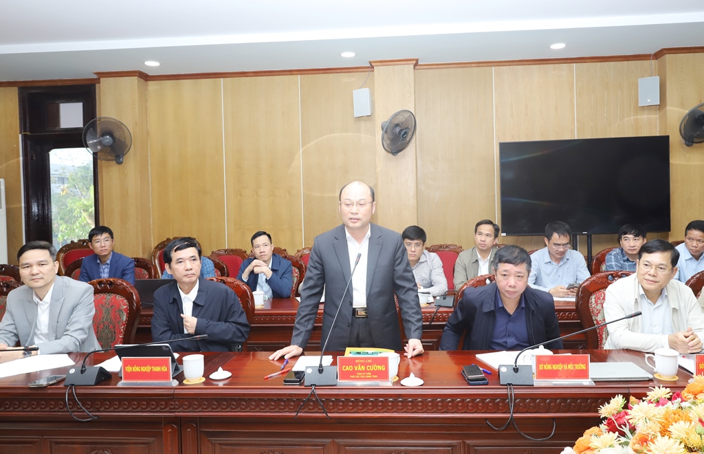 | Phó Chủ tịch UBND tỉnh Cao Văn Cường phát biểu tại buổi làm việc. |
