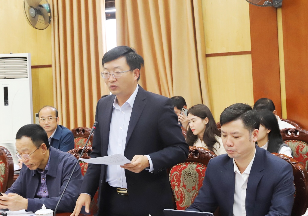 | Phó Chủ tịch Thường trực UBND tỉnh Mai Xuân Liêm, Phó Trưởng ban tổ chức hội nghị tham gia ý kiến tại hội nghị. |