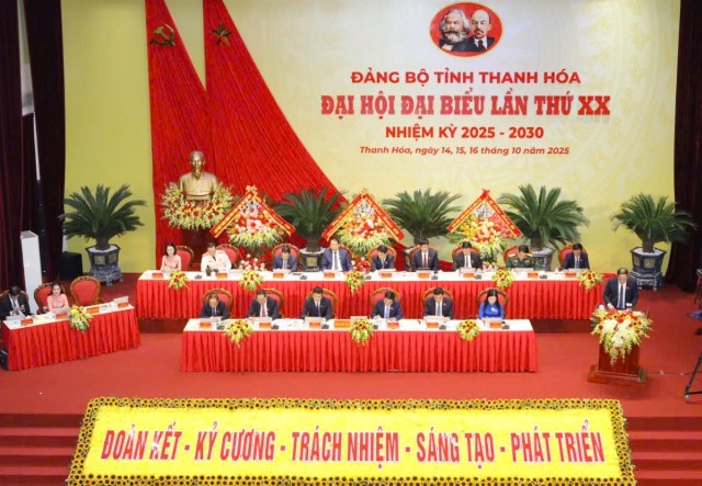 Sáng 15/10/2025, tại Trung tâm Hội nghị 25B (phường Hạc Thành), Đảng bộ tỉnh Thanh Hóa khai mạc trọng thể Đại hội đại biểu Đảng bộ tỉnh lần thứ XX, nhiệm kỳ 2025-2030. Đại hội vinh dự được Ban Chấp hành Trung ương Đảng, đồng chí Tổng Bí thư Tô Lâm, Ban Chấp hành Đảng bộ Chính phủ tặng lẵng hoa...